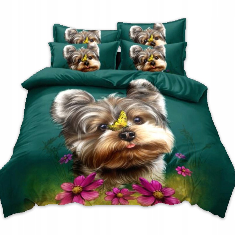 Luxusné bavlnené 3D obliečky JORKŠÍR S MOTÝLIKOM - francúzske 220×200 cm + 2 obliečky na vankúš + prestieradlo zadarmo -Skladom55,3 EUR/ ks