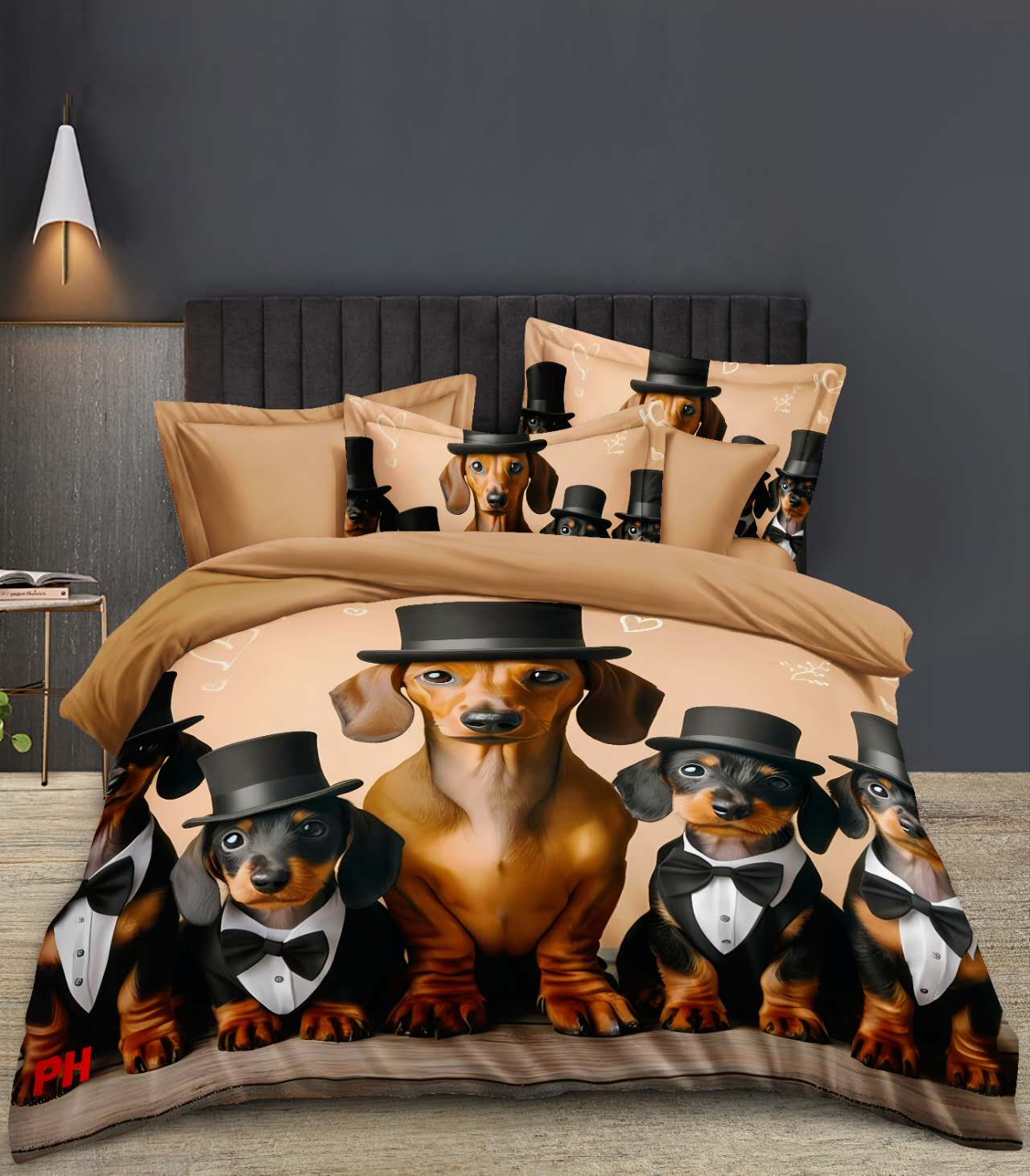 Novinka 2026 – Roztomilé 3D obliečky 140x200/70x90 cm – Jazvečíky s Klobúkom + obliečka na vankúšik ZADARMOSkladom21,2 EUR/ ks