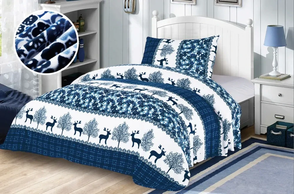 TOTÁLNY MASAKR CIEN - OBLIEČKY MIKROPLYŠ 70x90/140x200cm - JELENI - MODRÉSkladom21,2 EUR/ ks